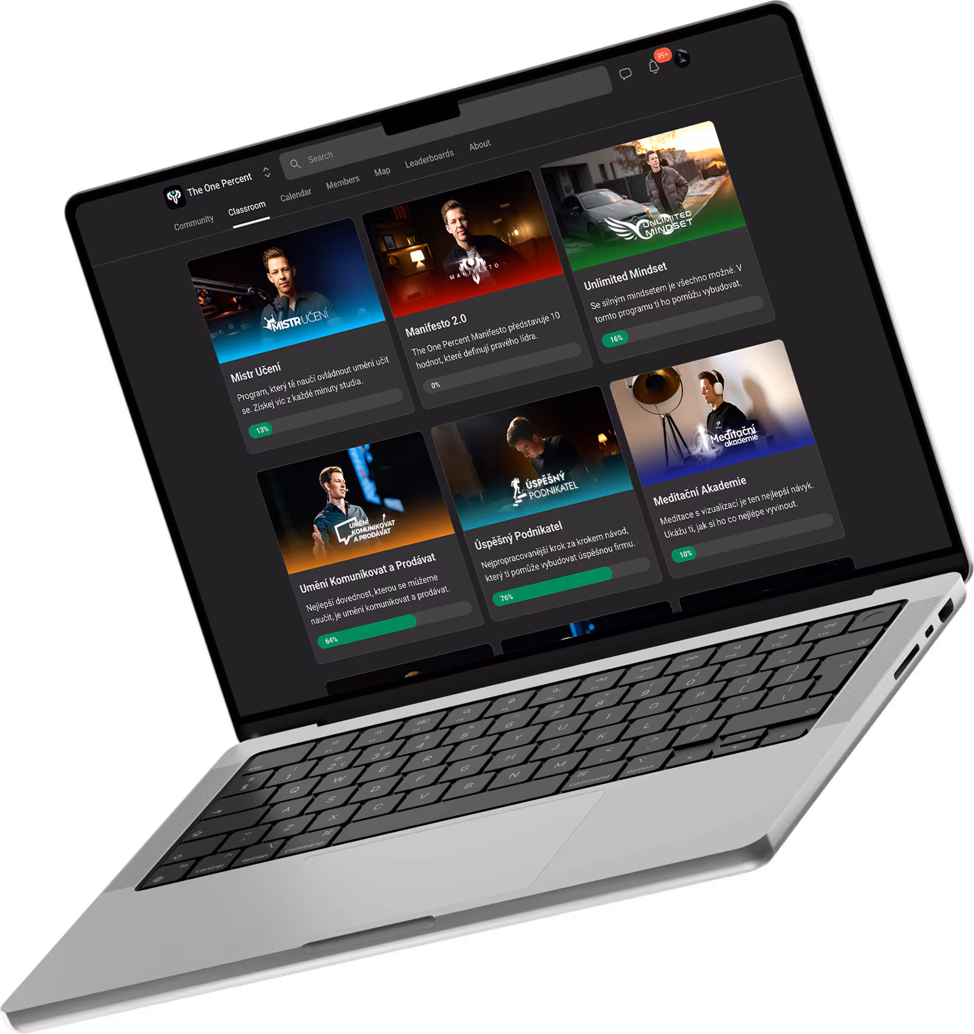 Získáš přístup ke stále se rozrůstajícím programům na témata, jako je mindset, prodej a komunikace, online podnikání, meditace, leadership a spousta dalších praktických témat v podobě 70+ edukačních videií.